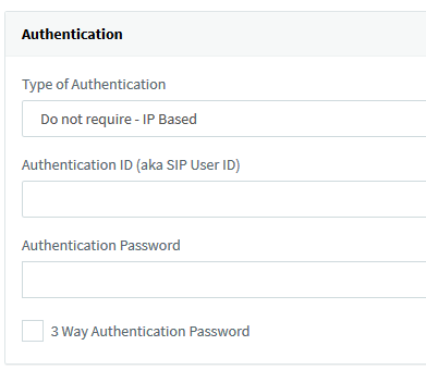 By default, Megacall sets up the SIP Trunk authenticating your Switchboard IP, so you don't need to add the User ID or Auth. Password as we are already authorizing any calls received from your Switchboard IP.