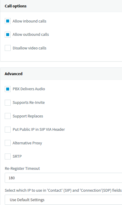 Under the SIP Trunk OPTIONS tab, check the following options only: