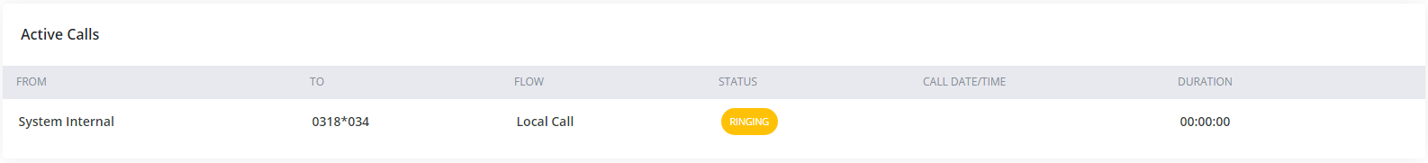 We can also see on the same screen when people are making calls to other extensions, so calls internally will also show up on the list and be displayed as a LOCAL call.