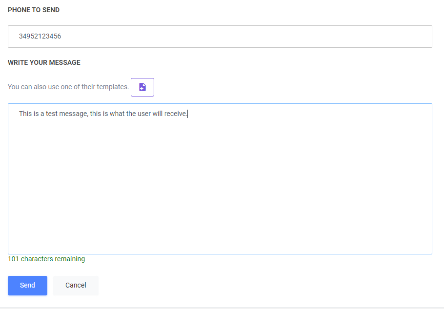A little further down you have a box to type the content of your SMS, just below you have display that lets you know the number of characters that are remaining for the message to be sent in one SMS.