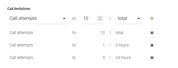 With call limitations you can set as many values as you wish, please note this could affect the number of available leads as it will take in to consideration all the factors before deciding to make the the call. If for any reason a contact matches any of the criteria it will not be called.