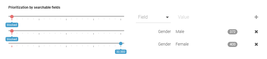 A typical example of prioritising searchable fields could be used in the example of a magazine supplier. The magazine supplier may have a field in their data called "Gender" in which they have both "Male" and "Female" values.