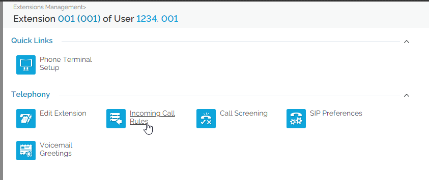 Next we need to click on the option that says "Incoming Call Rules"